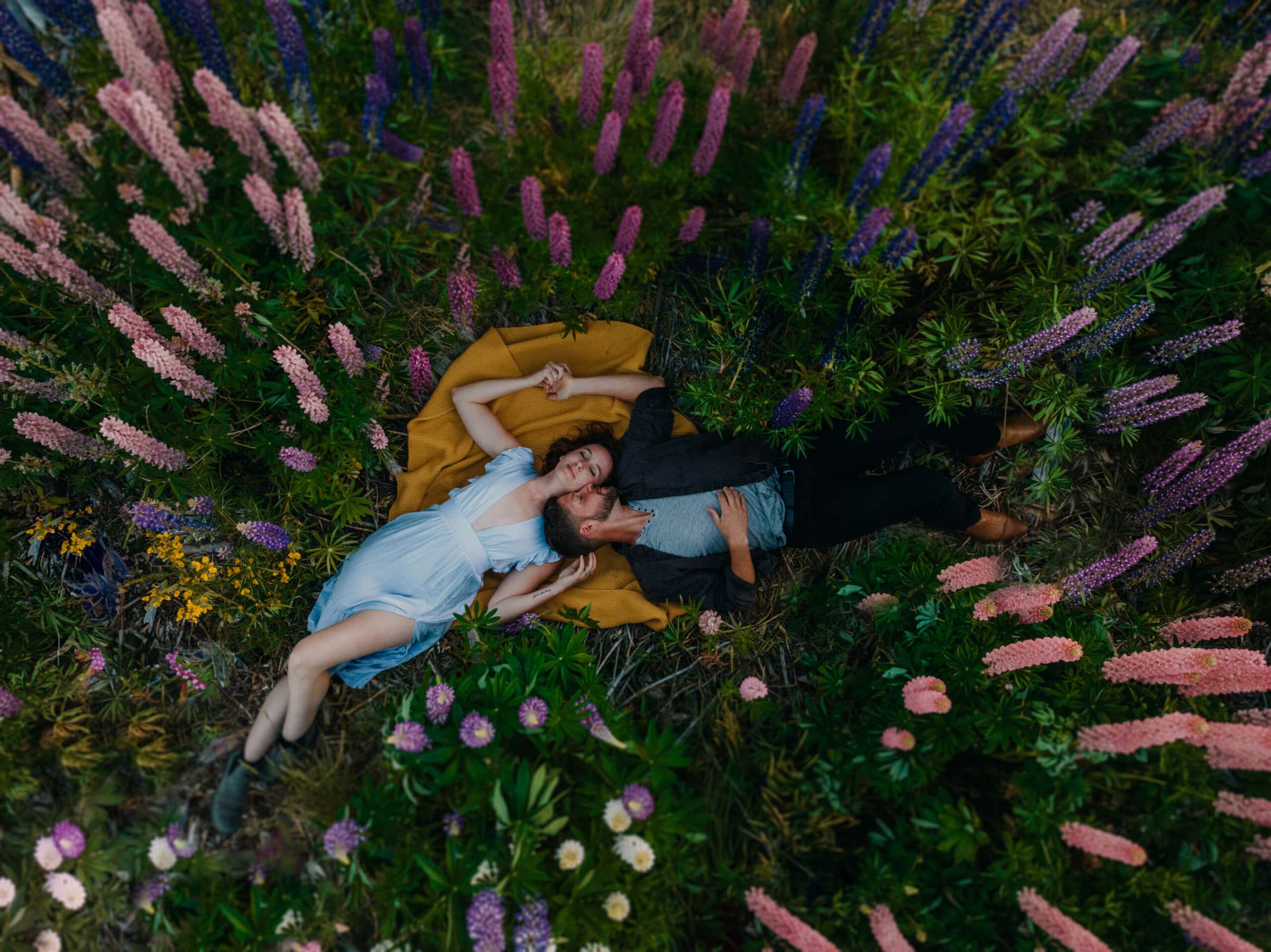 However, lol, we ended up stopping along the lupines at several view points along Lake Pukaki. The Lupines for me were a massive selling point for coming to New Zealand. If you don’t know I have a tattoo of one on my forearm I love them so much. I was so excited to seem them in these bold colors amongst this incredible view and to smell massive fields of them. Since we had found two incredible viewpoints of them, we all had a change of plans and decided to do a trade session at sunset with our friends among the lupines. We drove back to the Airbnb for dinner, got ready and set back out to the lake. We had the must stunning sunset and blue hour together having such a time in the lupine fields!