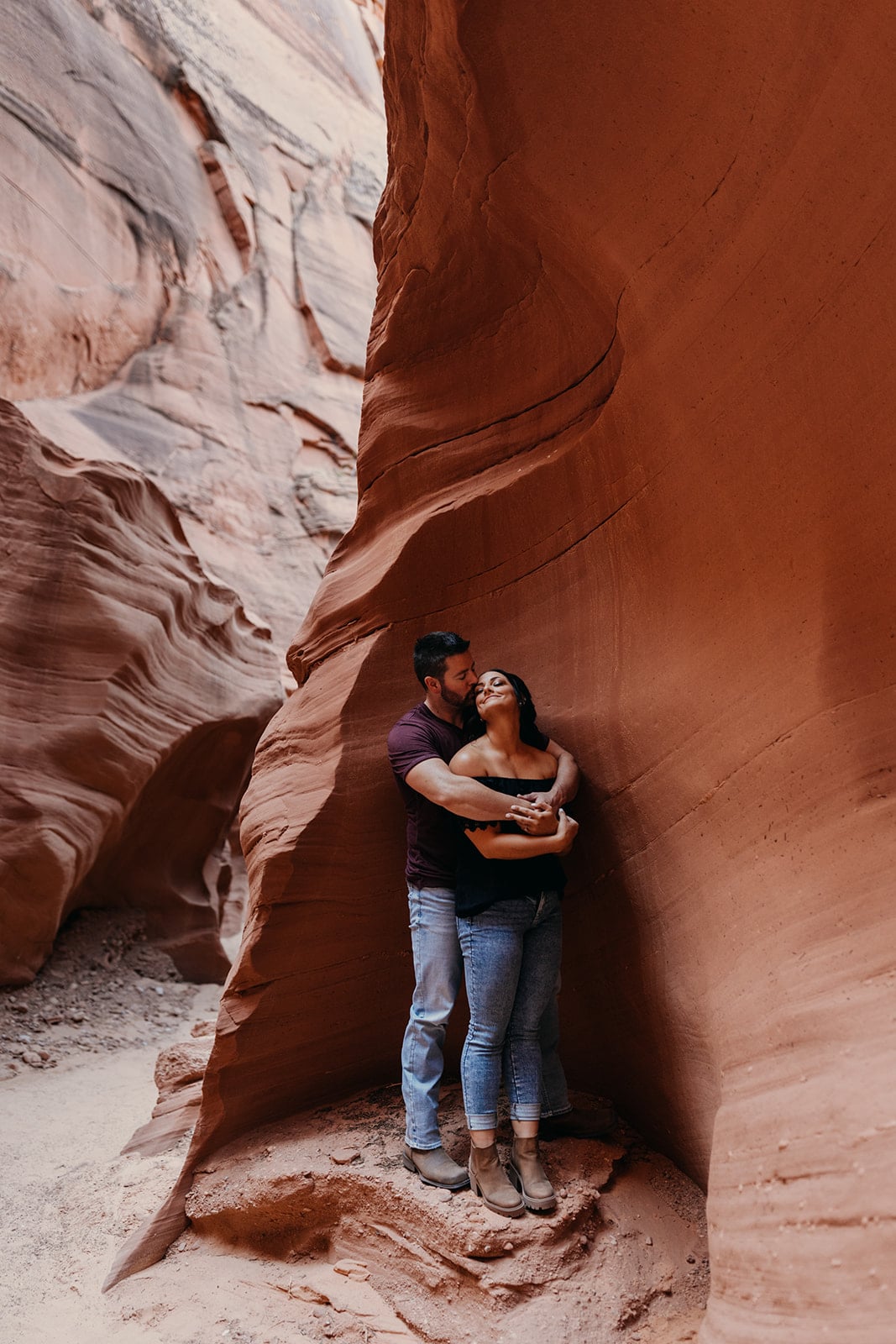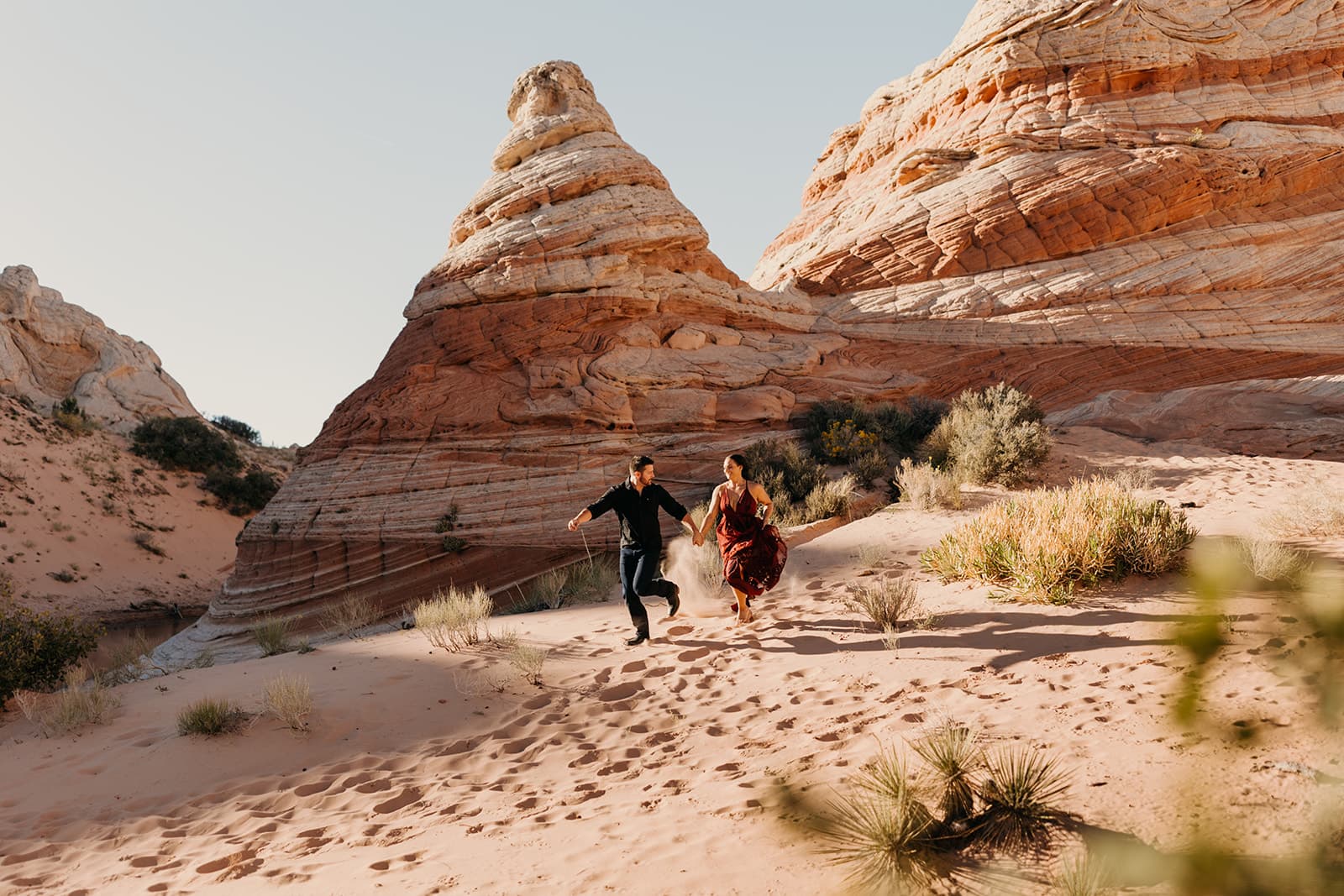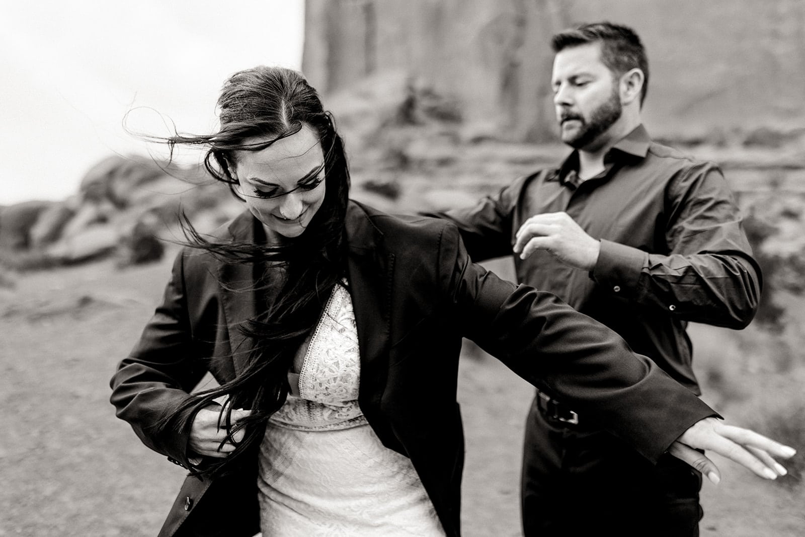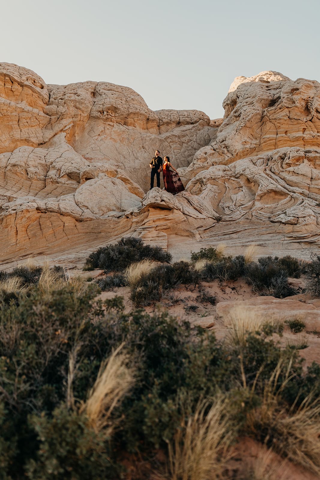 After getting engaged Danielle and Troy started planning and brainstorming about their wedding day. At first thinking to do a traditional wedding in Canada, where they call home. After putting some ideas together they decided to elope instead. Cost wise their dollar would go further. They were excited to do something new together, like how they would do big new first together when they first started dating. They decided to rent an RV and go on a road trip from Canada to the Southwest US. Having never been here they were very excited to see all the different colors, textures and to experience as much as they could.