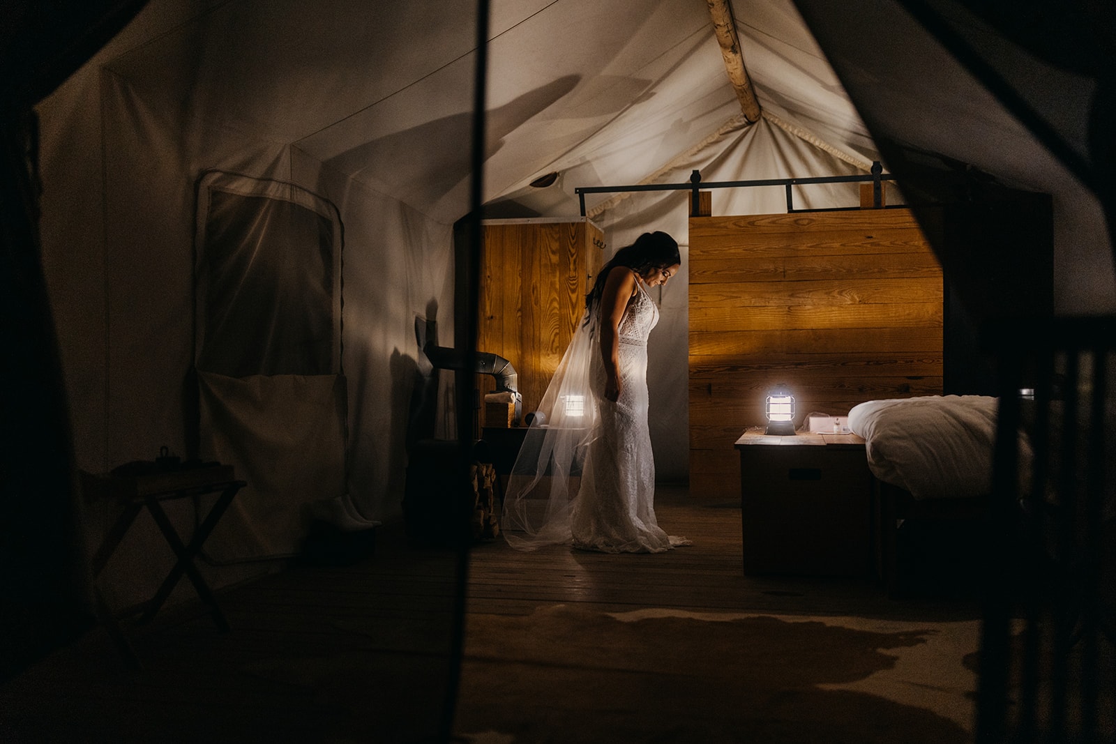 We started early in the middle of the night so we could catch another sunrise. Dani went into town to get her hair and make up done with Troy got ready back at base camp, Under Canvas. Once ready Tory made his way into Arches National Park to wait until the first look. Dani came back to camp to get into her dress and then was off to meet Troy!