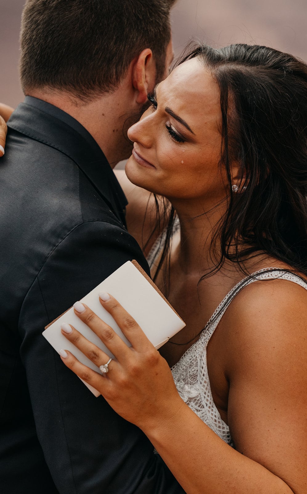 It was a quiet, emotional and beautiful ceremony. Once announced married they shared a kiss, a long embrace and turned towards the canyon over look to hold each other letting this moment soak in.