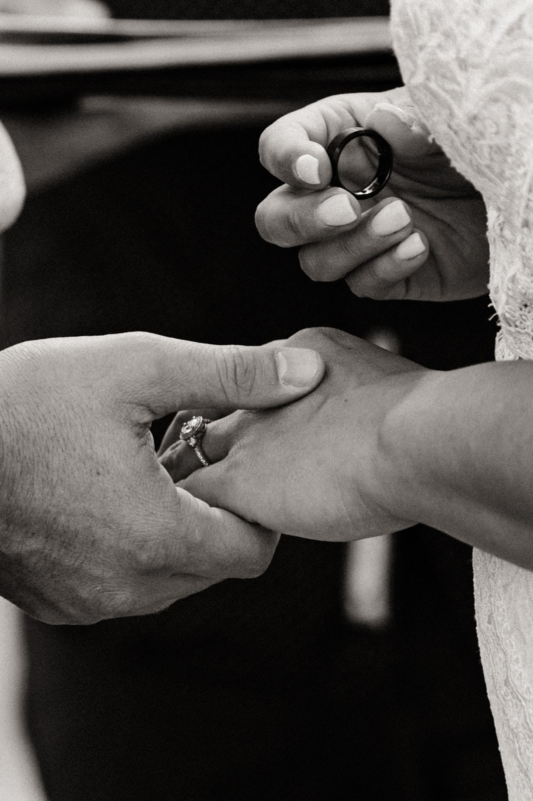 Bill officiated the ceremony, stepping away for them to share their private, handwritten vows and co-recite the poem, The Amber Spyglass by Philip Pullman. They ended their ceremony with a passionate dip kiss and instantly took their rings back off to see the surprise scribing on the inside of the bands from each other.