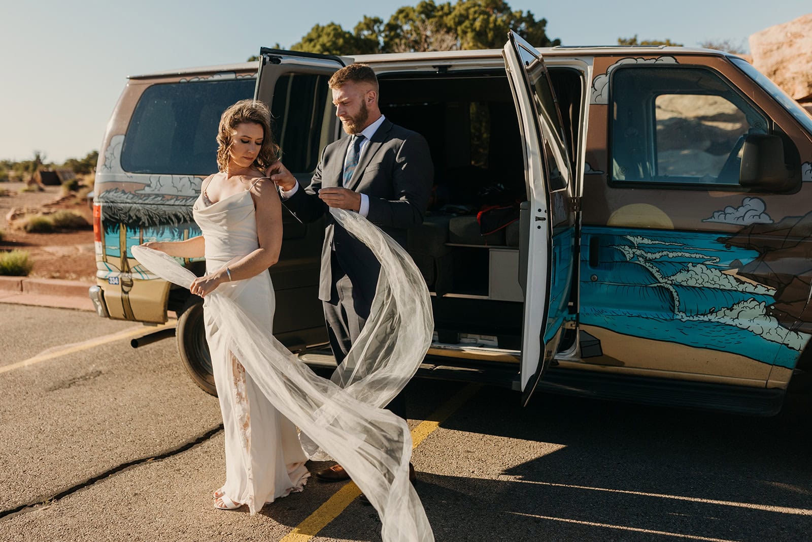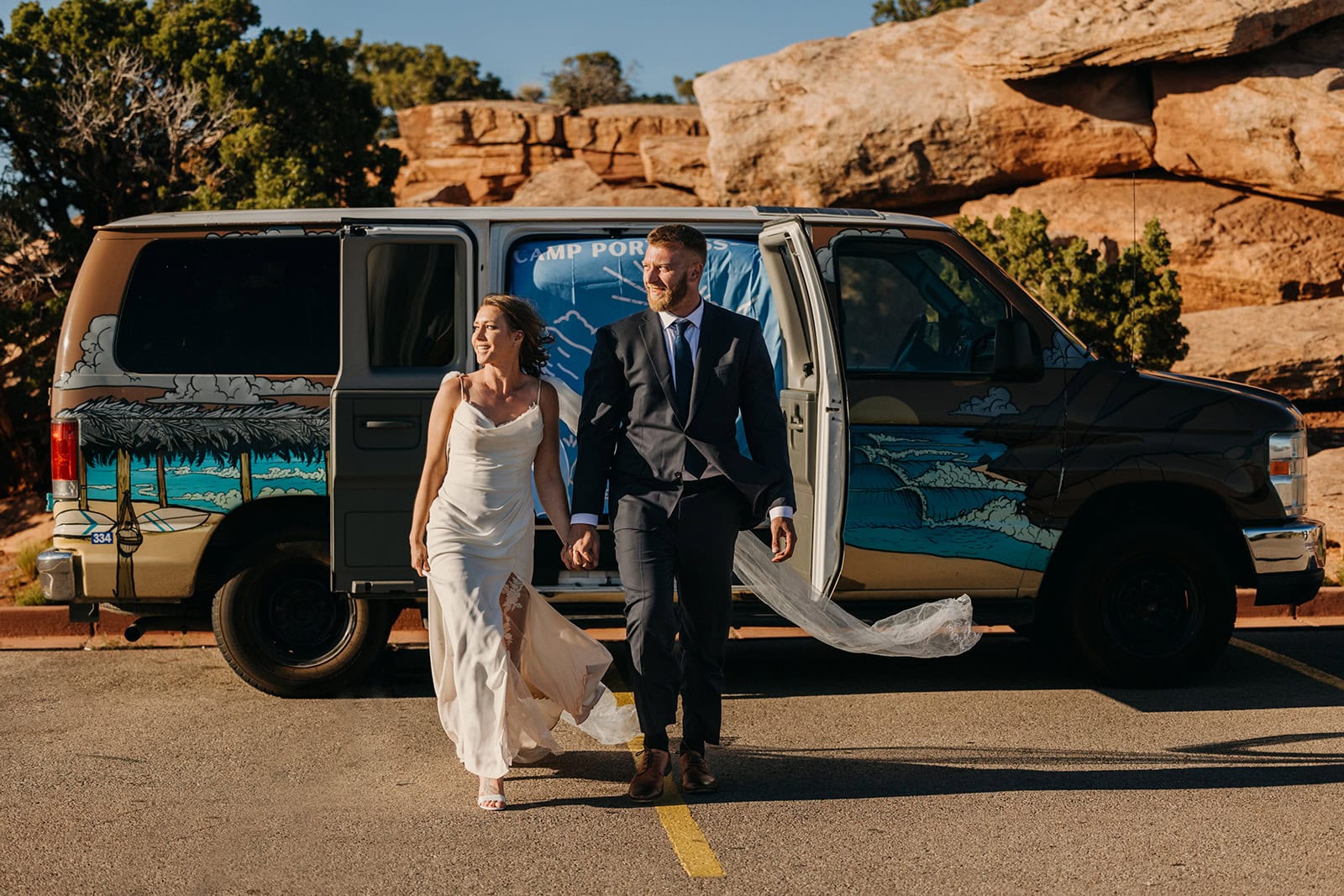 Rachael and Chris fell in love with the idea of an elopement when they were considering getting married, but looking for a way that felt right and natural to them. To them, the purpose of a marriage is to signify your love, admiration, and promise of growth to one another. An elopement wedding fit as a way to honor the purpose of their commitment. They decided they would tie the knot on an epic Van life road trip from Vegas, to Moab, to Colorado, to the Tetons and back! While this trip was huge already, as they would be ticking off a bucket list item, it really felt huge to celebrate their relationship of almost 10 years, all they had built together from when they first met, all the changes, highs, lows, love and hard work.