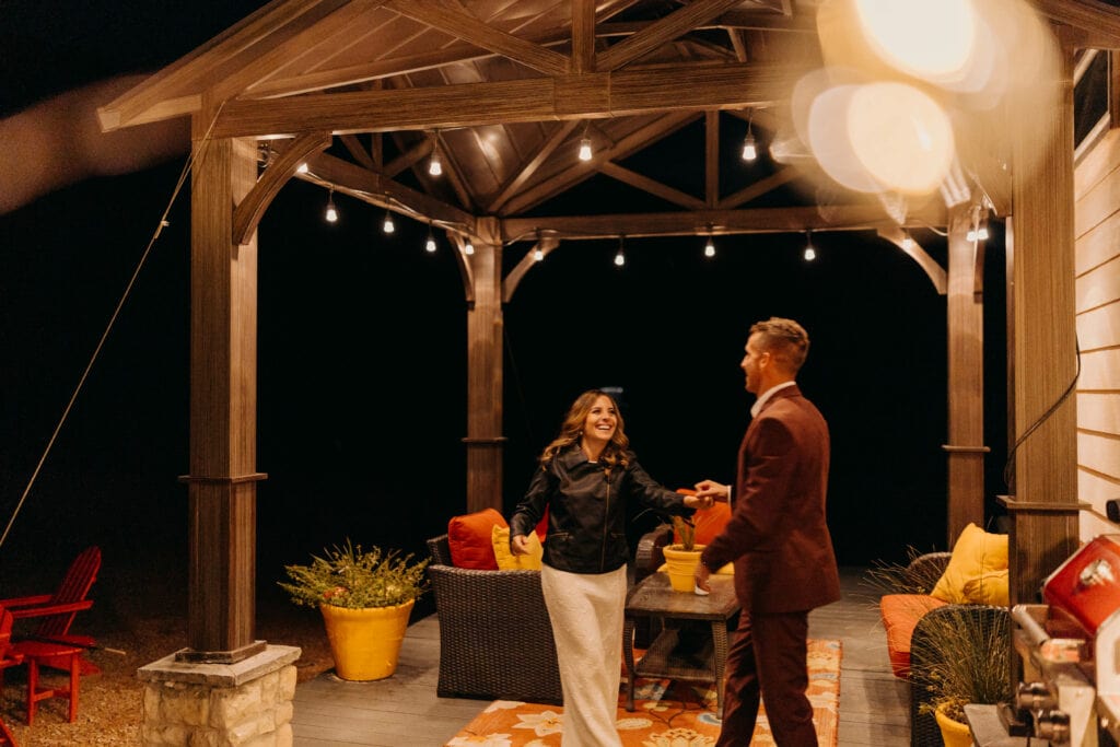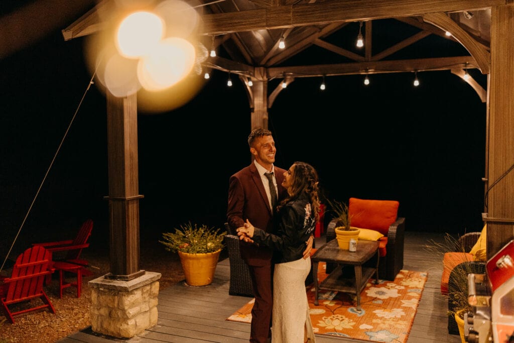 Upon arriving back to the house the chefs had set up their space to cook outside. Pela and Marty were kind enough to invite us to stay for dinner! As we all snacked on appetizers they poured a drink to begin the celebration for the evening. Before sitting down together, they shared a fun and flirty first dance with one another. We dined over an absolutely amazing meal, chatted about life and all of their goals for the future as a now Mr. + Mrs. We said our see ya laters that evening as they were jumping into the hot tub under the stars.