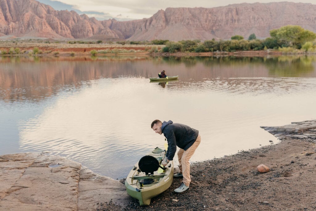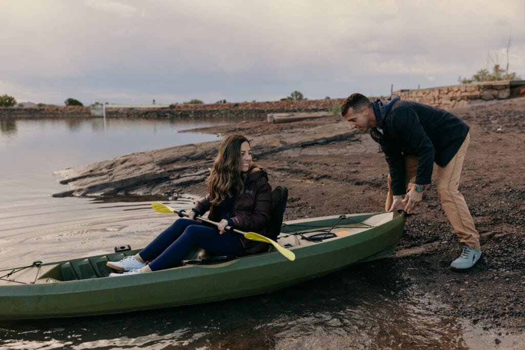 Once the vows were written, it was time for a little adventure!! They hoped into two different kayaks to kayak around the lake together surrounded by towering canyon walls. Between their laughter and joking around together, I was able to hear them sharing memories with each other from when they first met and all that they had been through to lead them here.