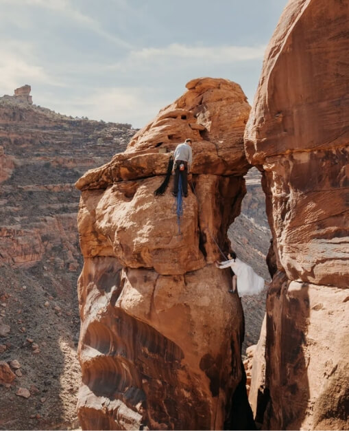 “Not only were they amazing to work with, but they are so much fun to be around and really made us feel special on the most important days of our lives. Our elopement was not an easy one, it included a hike, scramble, technical rock climbing, and a bivy on the summit, but they were excited about it all. They are honestly probably one of only a couple photographers who could pull it all off, and they were so much fun to spend the weekend with.”