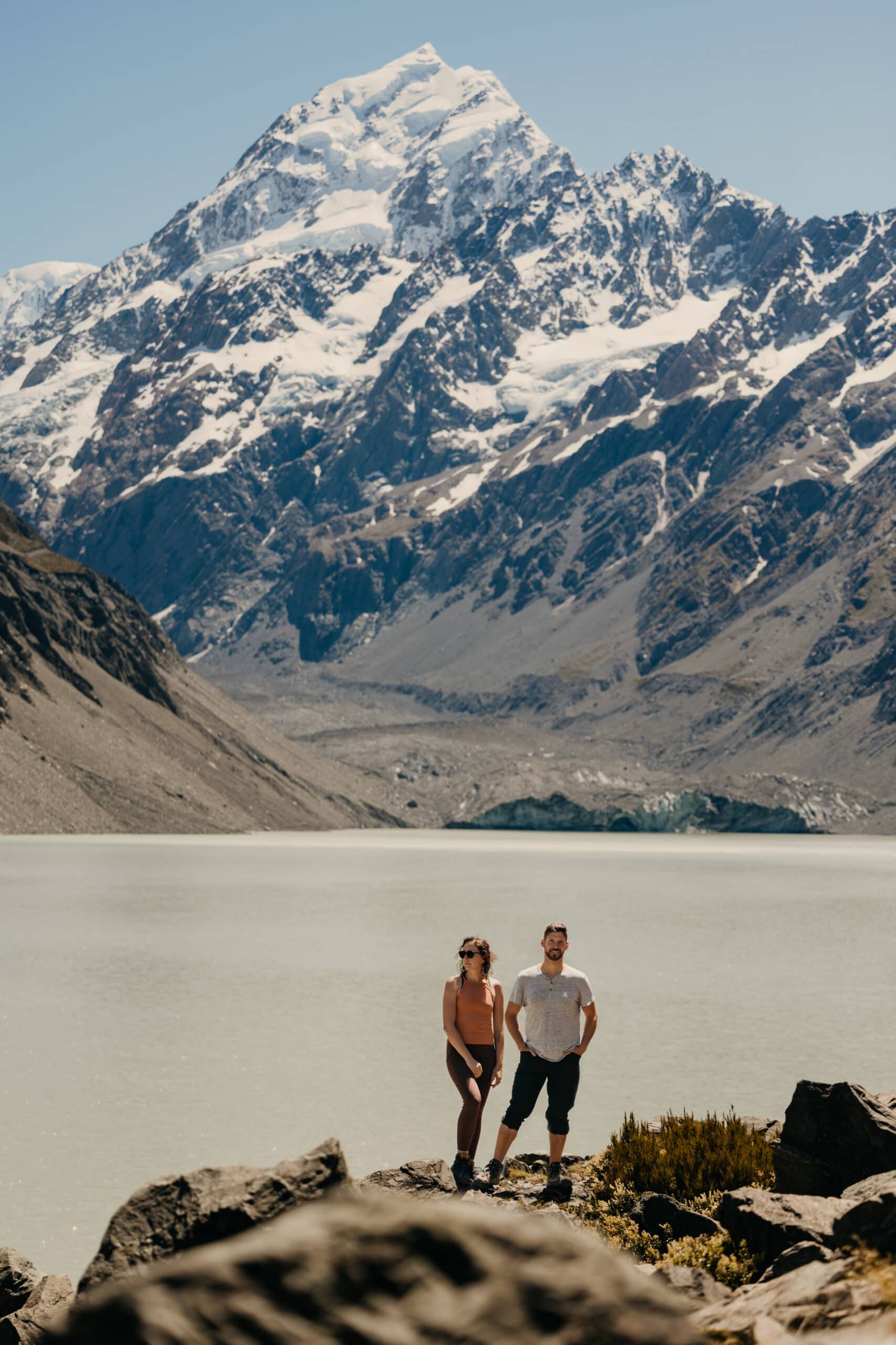 After this hike we drove over the next trail we wanted to do that was a short 1.2 miler just one mountain ridge over from where we are that would lead to another glacier lake from Mt Cook. However, we were exhausted! From the travel, the heat and overall simply just ending our 2023 elopement season. We decided to save our energy and go grab food or head back to the Airbnb.
