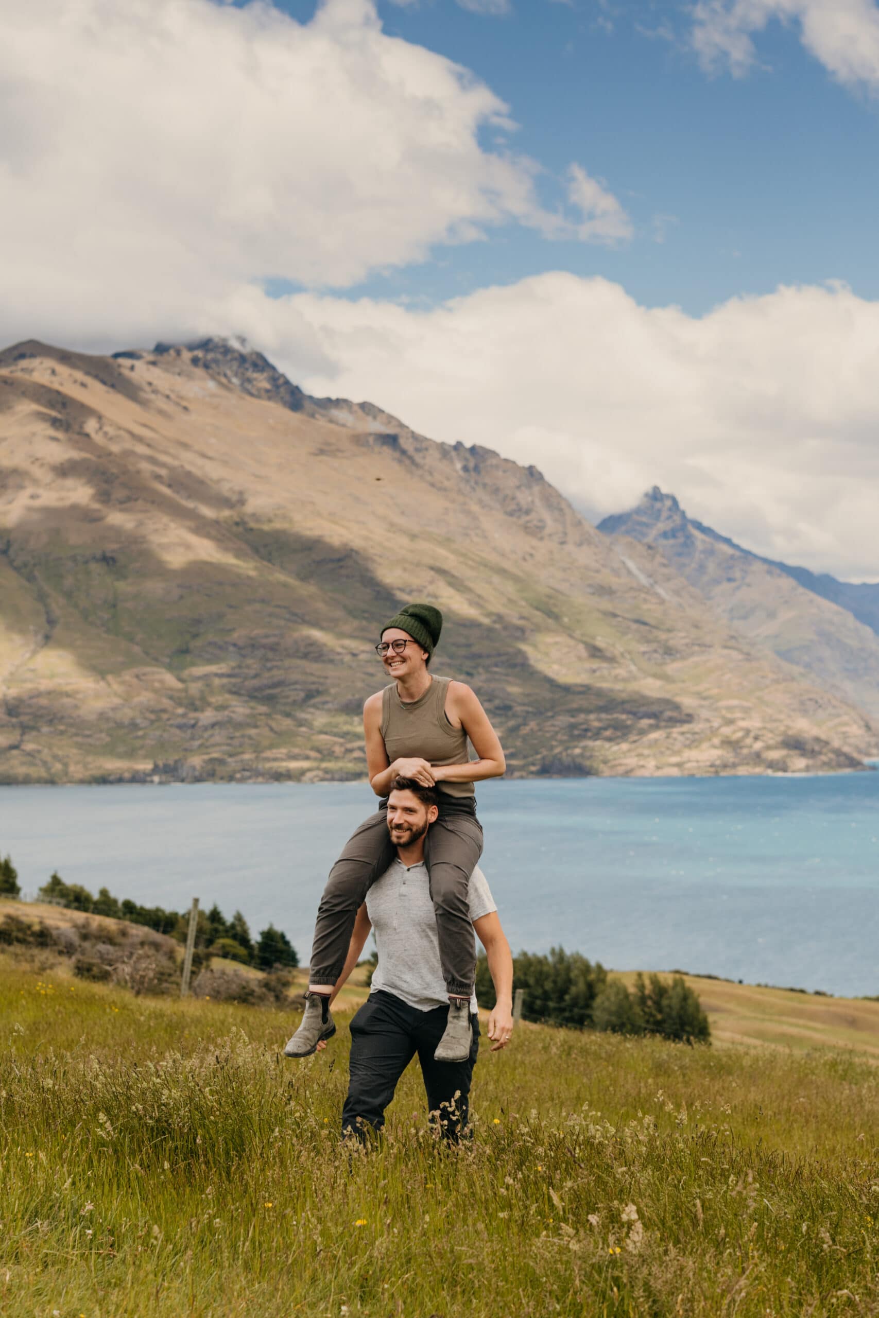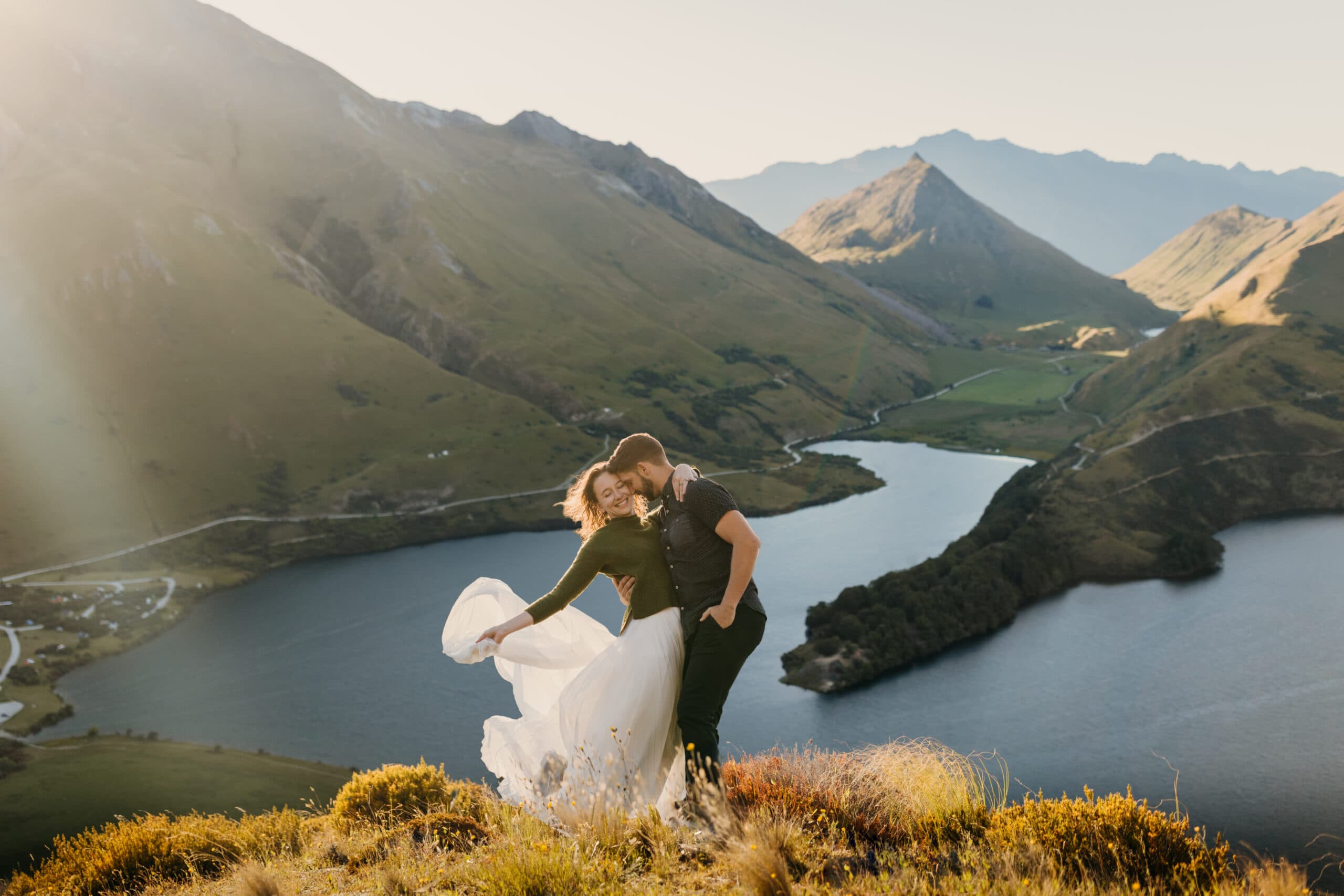 Once we returned and the rest of the group was awake we set back out for breakfast and coffee. We took a drive along the lake that is within Queenstown just to get out and enjoy the sun and views some. We returned back to our Airbnb to help our friends get ready as were going to photograph their 10 year vow renewal in Glenorchy. They spent the day before scouting out all the locations they wanted to go for the day. This area meant a lot to them from their first trip to New Zealand. After everyone was ready to go we set out for the drive enjoying the incredible mountain views along the way.