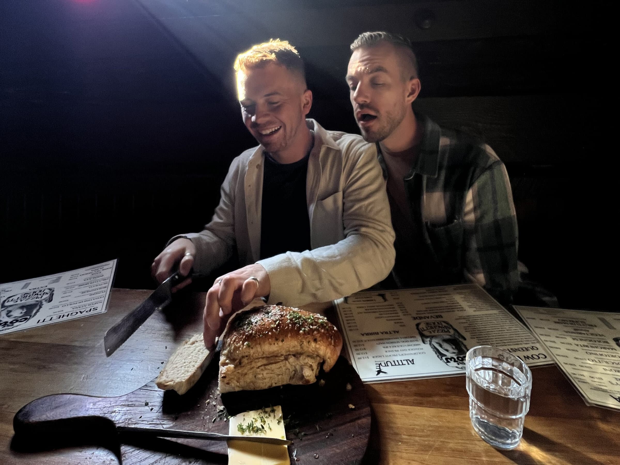 Since by the time we got done most of the day was gone we decided to make a dinner plan. We met back up with the rest of our friends for dinner at The Cow since it came recommended to us. We enjoyed the old stone house vibe with cathedral windows and the most amazing garlic bread. However, we all agreed the meal was just okay. From there we all set out for the hot tub at the house to enjoy sunset and blue hour. Don’t worry, we kept the tattoos dry.