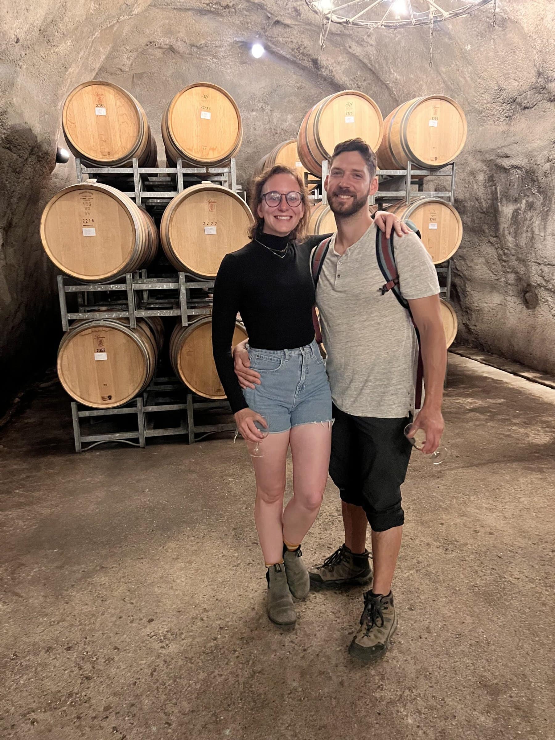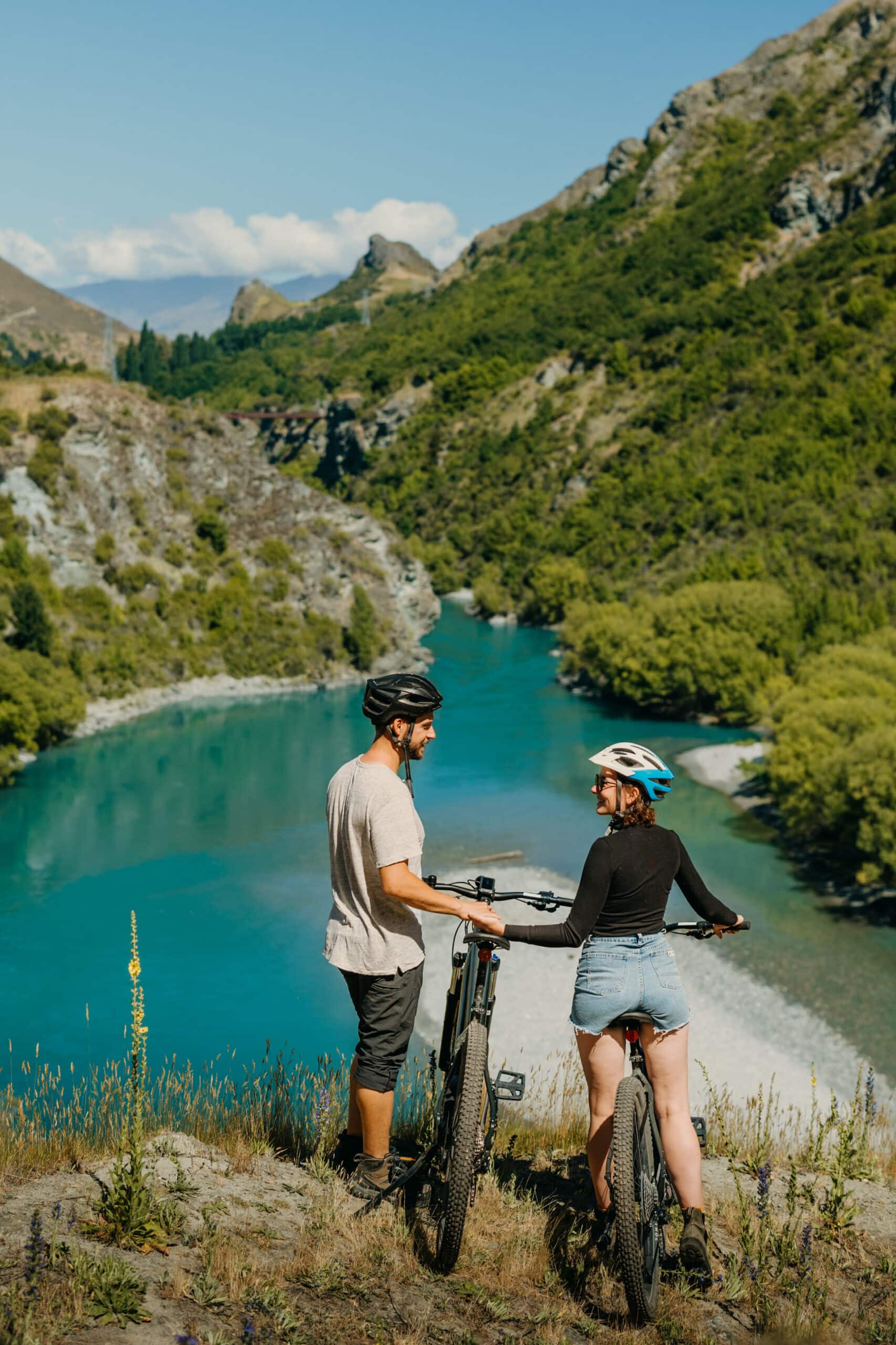 For our last day in Queenstown we decided to fully live it up. We wanted to soak in every single minute we had. We started with you guessed it – coffee and breakfast. Then we headed away from Queenstown for a bike and wine tour we had signed. up for at Gibbston Valley. We picked up our electric assist bikes and started out with a small route to a view point before our wine tour into the wine cave and tasting. It was so fun to learn about the process of wine making here. While we enjoy wine a lot, we had never done a tour! The cave cellar we visited it the oldest and largest one in New Zealand! After the tour and tasting we hopped back onto the bikes to ride around the wine country of New Zealand. We biked past people bungee jumping, historic and swinging bridges and farmland. As we rode along the bike tour, the air just smelled amazing and the views were awesome. It was such a fun time! After our ride we went back to the wineries restaurant for lunch. We shared the heirloom tomato salad and a spinach gnocchi and beet plate. I was honestly truly shocked at how good the food was and I really enjoyed the meal. As we drove out of wine country we stopped at one more winery for a quick tasting. I am truly excited for the wines we bought and brought back home with us to enjoy for our Christmas dinner.