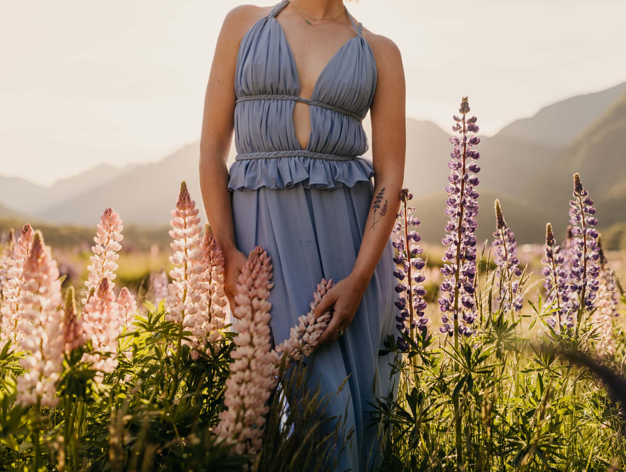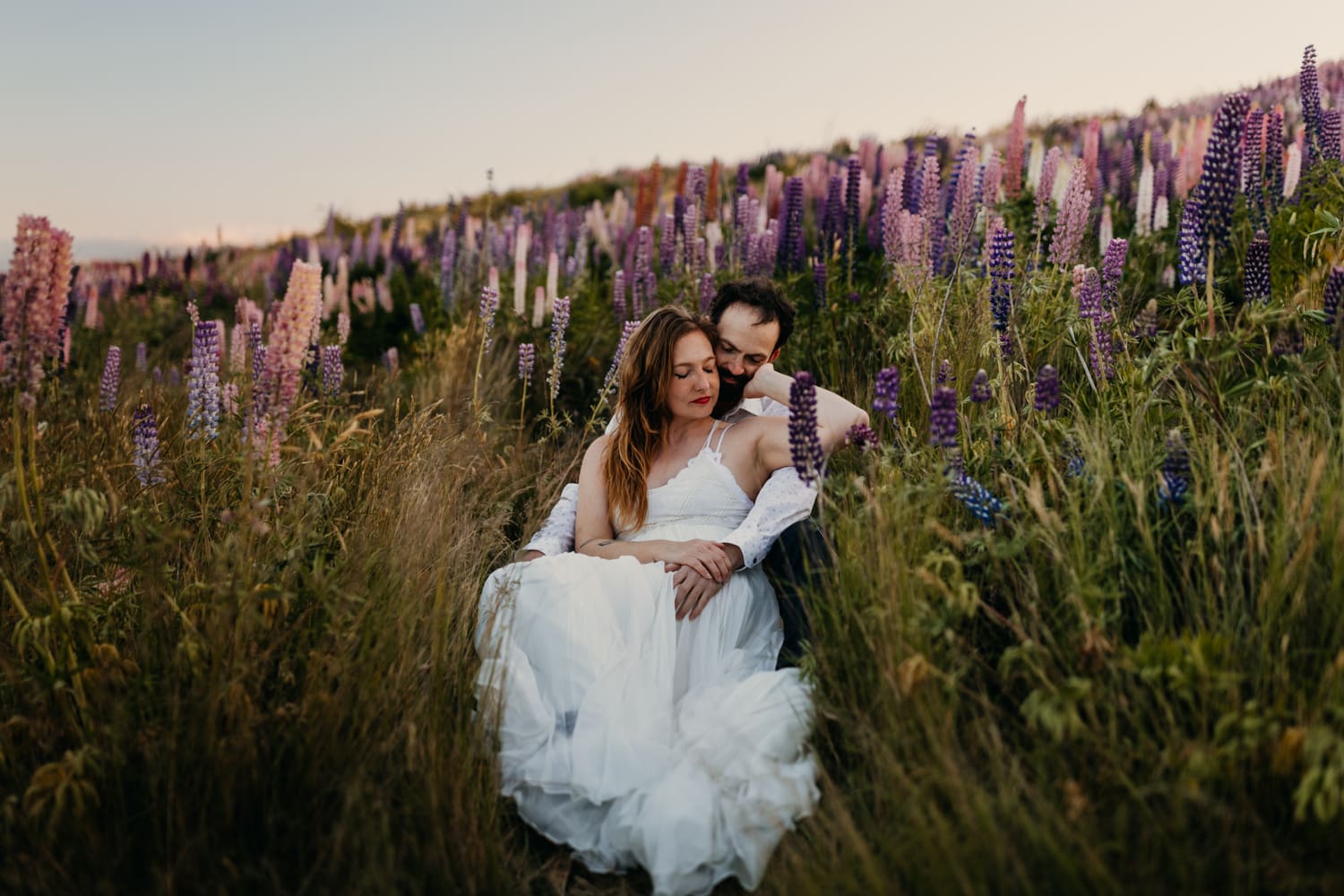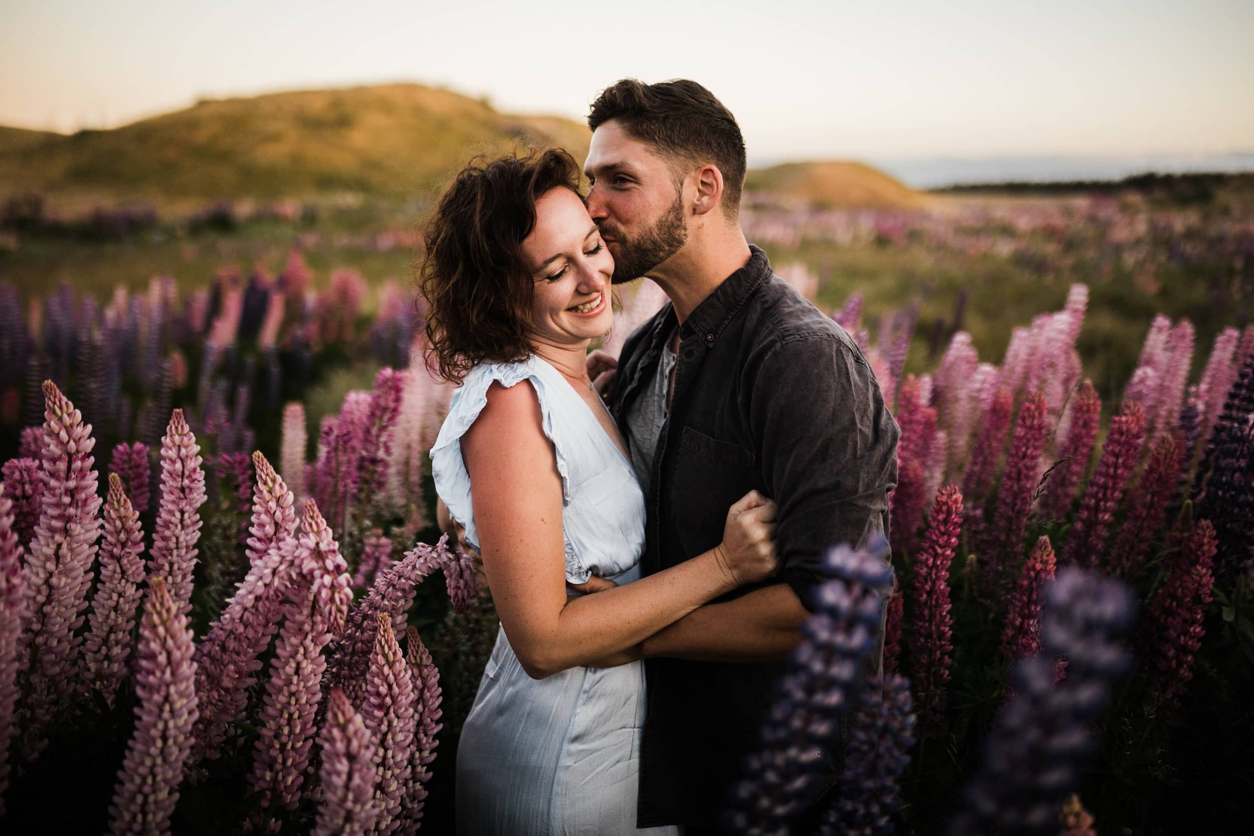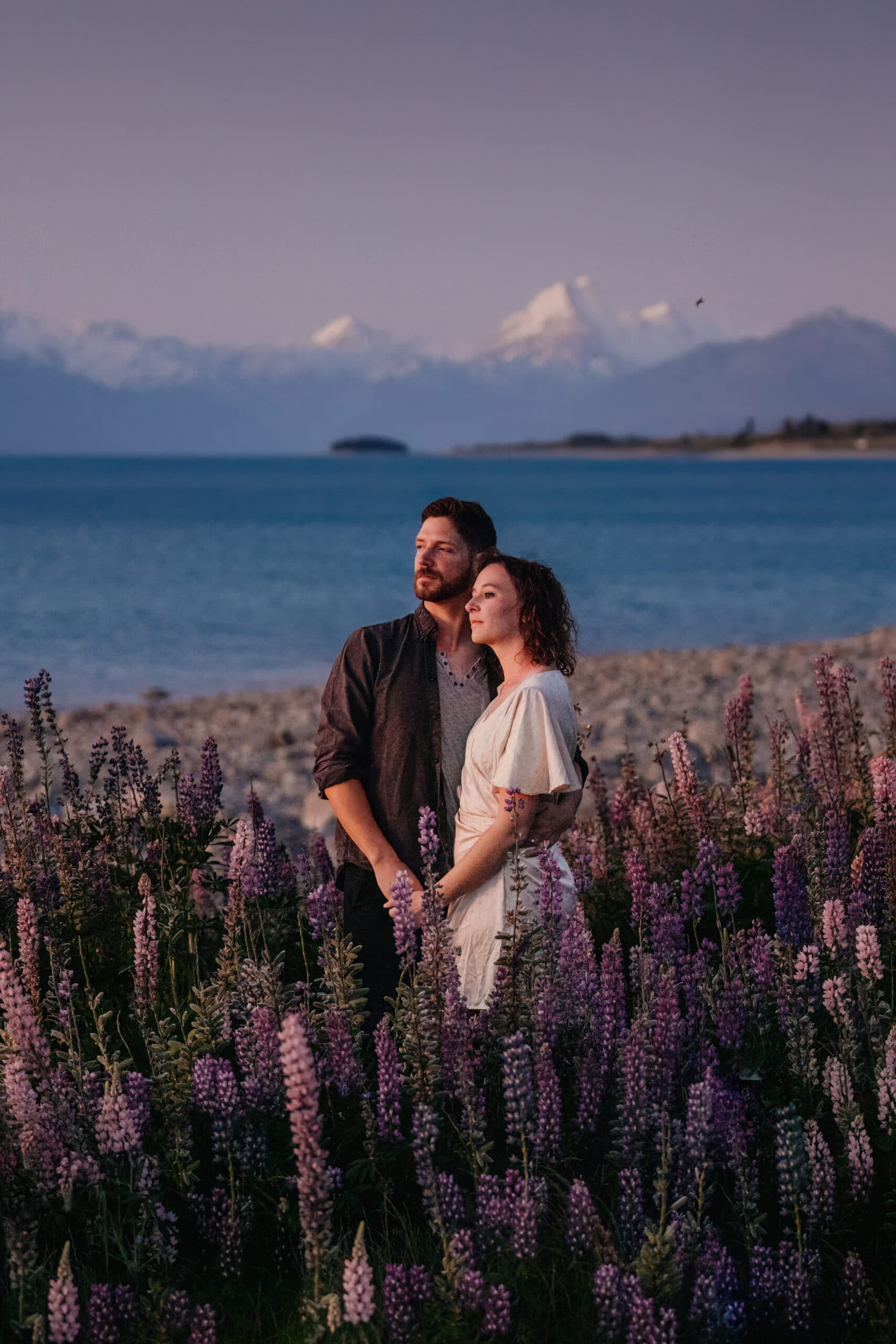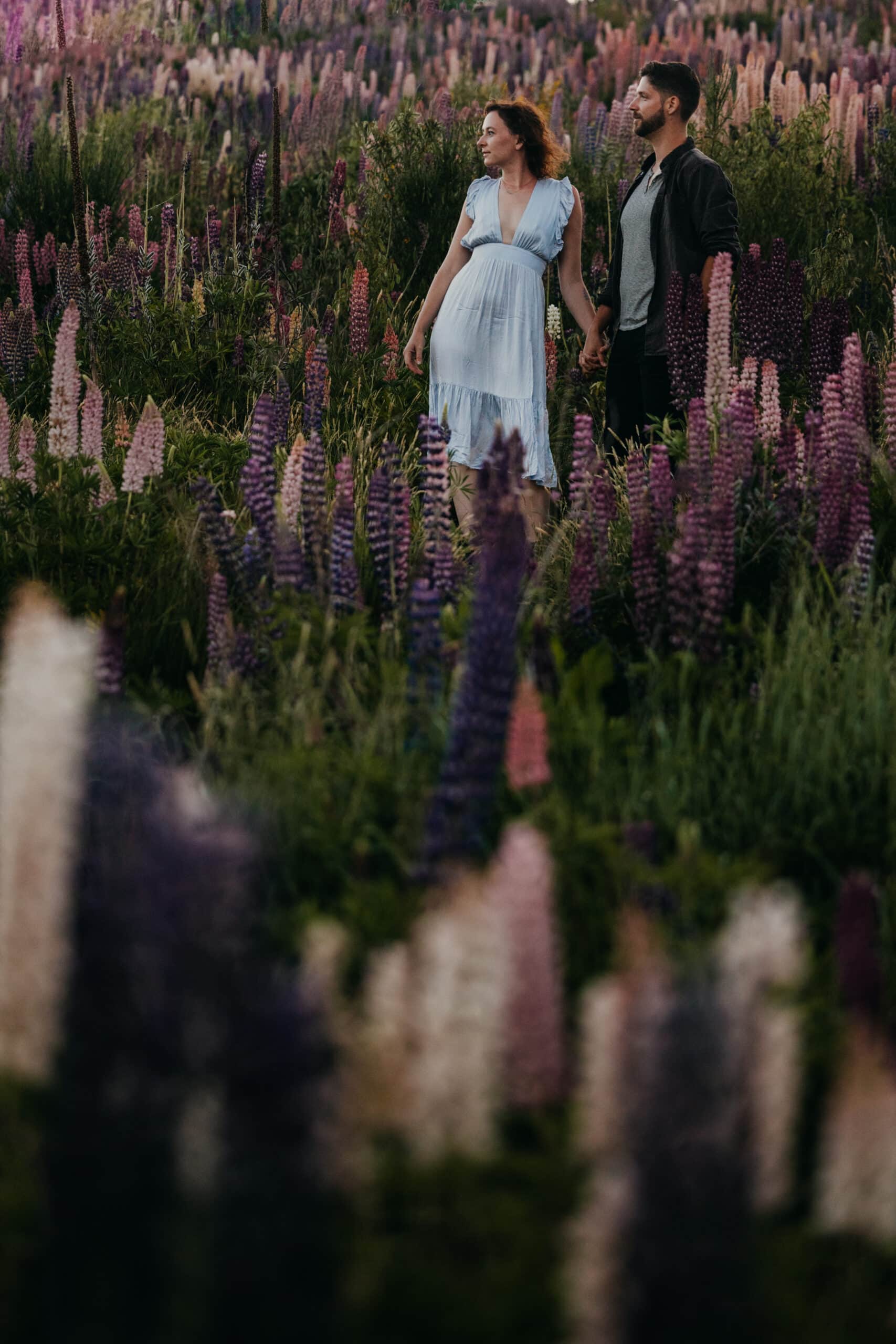 However, lol, we ended up stopping along the lupines at several view points along Lake Pukaki. The Lupines for me were a massive selling point for coming to New Zealand. If you don’t know I have a tattoo of one on my forearm I love them so much. I was so excited to seem them in these bold colors amongst this incredible view and to smell massive fields of them. Since we had found two incredible viewpoints of them, we all had a change of plans and decided to do a trade session at sunset with our friends among the lupines. We drove back to the Airbnb for dinner, got ready and set back out to the lake. We had the must stunning sunset and blue hour together having such a time in the lupine fields!