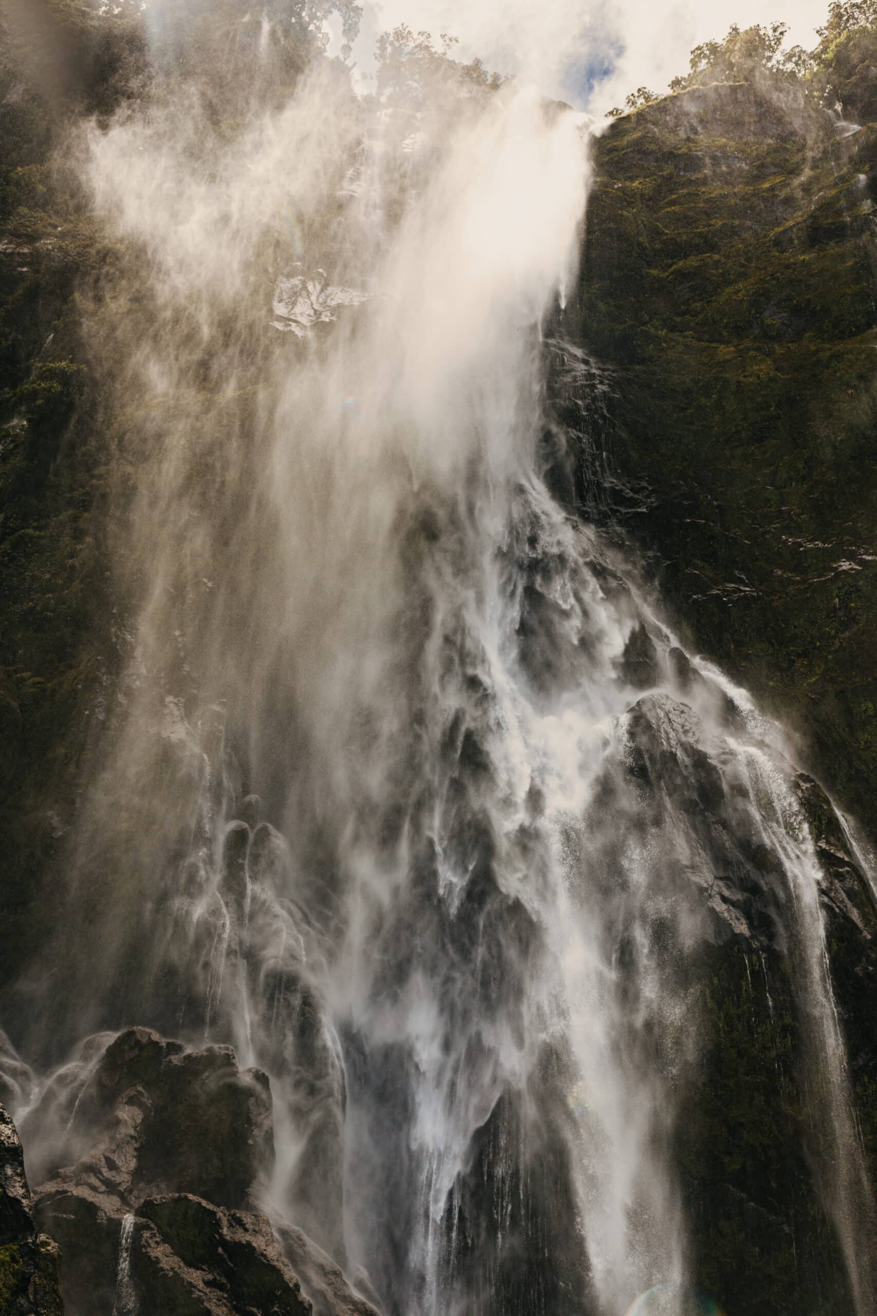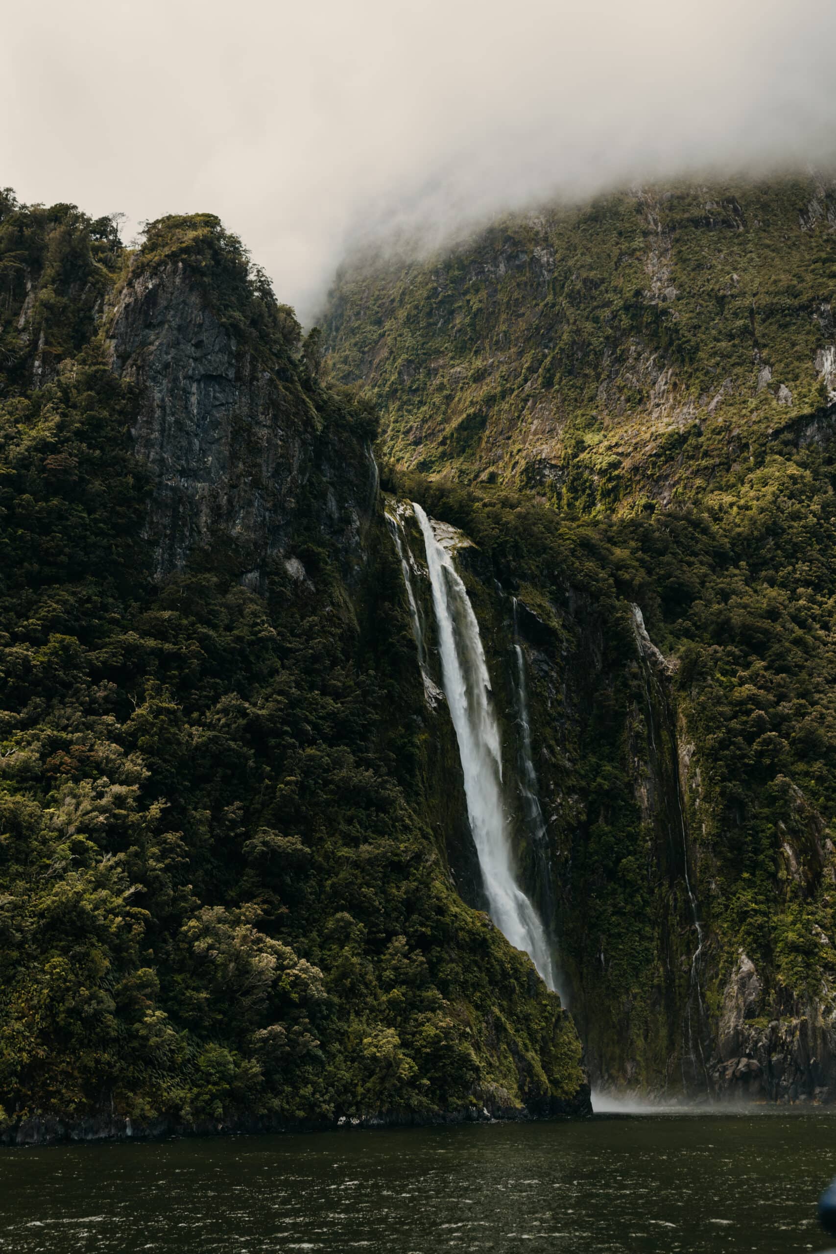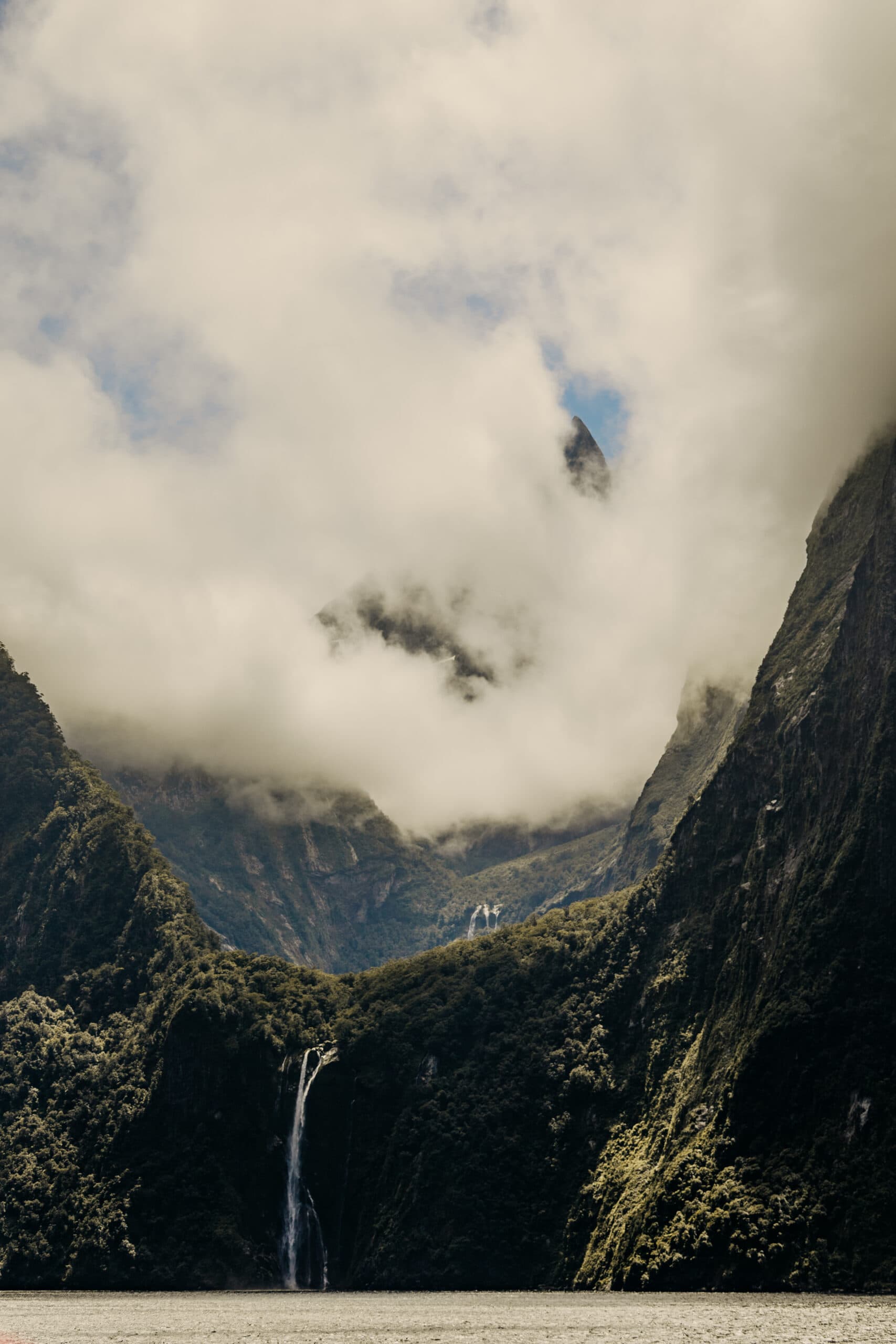 Everyone talks about how beautiful Milford Sounds is, and it truly is, but we were blown away at how beautiful the entire drive was. Every curve brought us a new mountain view graced with cloud inversions. SO MANY WATERFALLS. This place is truly a gem within New Zealand – which says a lot because the entire place is stunning. We arrived to the parking area with enough time for a coffee and light snack before getting onto the boat for our tour of the sound. We were provided lunch as the boat left the dock, then it was to the top deck – wind and all – you have 4 professional photographers on this trip lol…..We enjoyed the views, trying to stand in the wind. Watching for waterfalls and keas and soaking in the sun. We even saw one mountain shaped almost identical to the ever famous El Cap in Yosemite National Park (see photo below, you will know!).