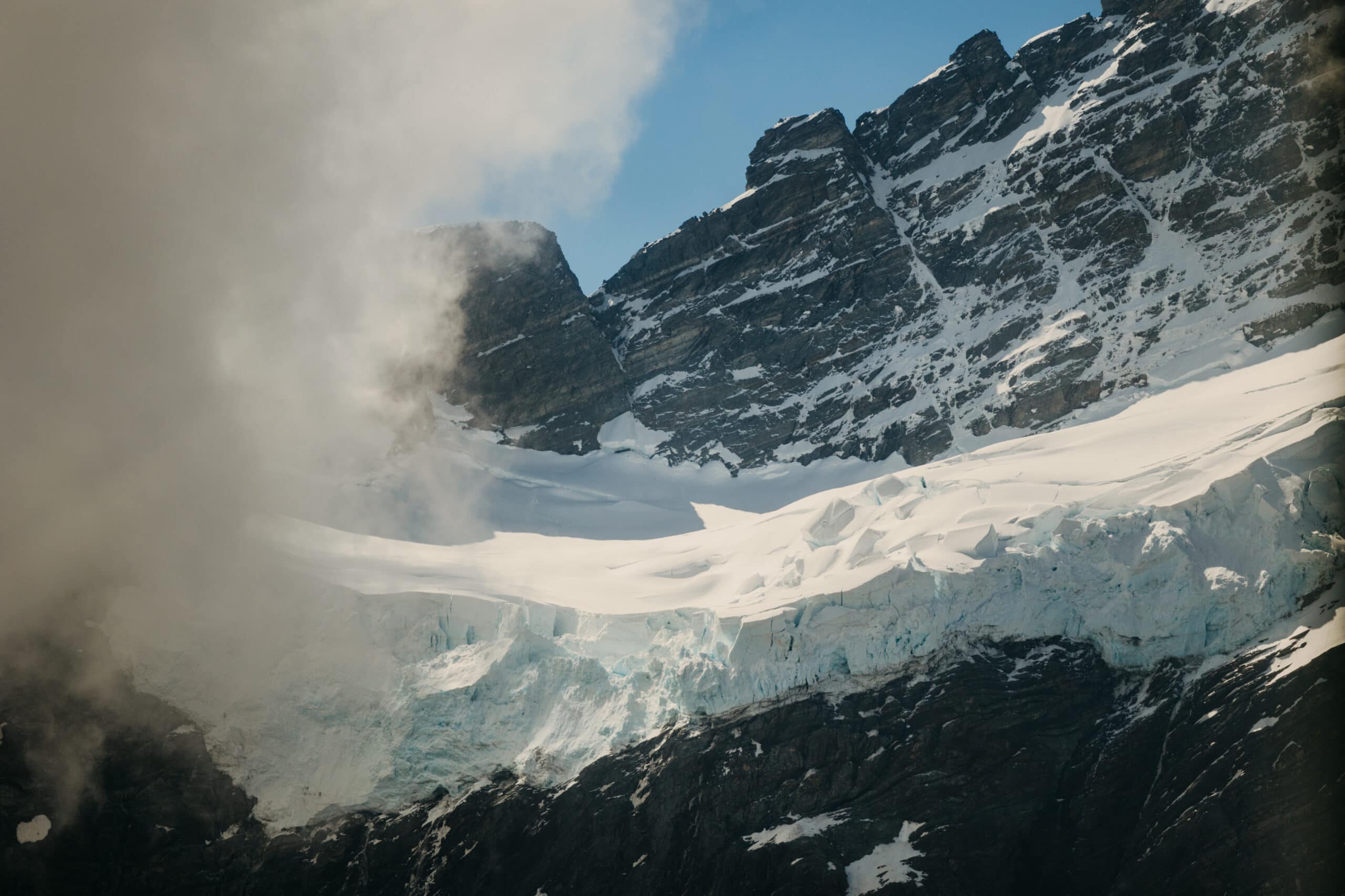 We started early getting ready, tea and breakfast. Then we stopped at the local store in town to pick up trail snacks. We arrived too late this time for a parking spot, but luckily there was some side of the road parking. We set out for some intense elevation! The first bit through the bush was flat and easy – smooth sailing. Then came the stairs lol….I mean thousands of stairs up 1500ft+ of elevation. The stairs were not too bad to conquer and we flew up them stopping here and there just to let people pass down or for the construction workers repairing stairs. After we reached the tarn glacier viewpoint everything changed – to super steep unmaintained choss sauce. For the next mile and a half it was another 1500+ feet and terrain that is hard on the body, good thing the view was good on the eyes lol. It took us much longer to get up this section of the trail. At the top out the wind LITERALLY knocked me over, but I was able to grab some rock to brace myself. We turned the corner and a guy said hey beware of the wind, don’t go that way lol….seriously noted. We kept going towards the hut, but stopped to admire the glaciers, clouds and waterfalls on the massive mountain (Mount Sefton) in front of us. We crossed a snow field and arrived at the hut. We stepped inside to admire the space, read about the local apline parrots who visit the hut (Kea’s) and enjoy lunch. Since the clouds were coming in strong, we decided to get back down the mountain before the rain came in.