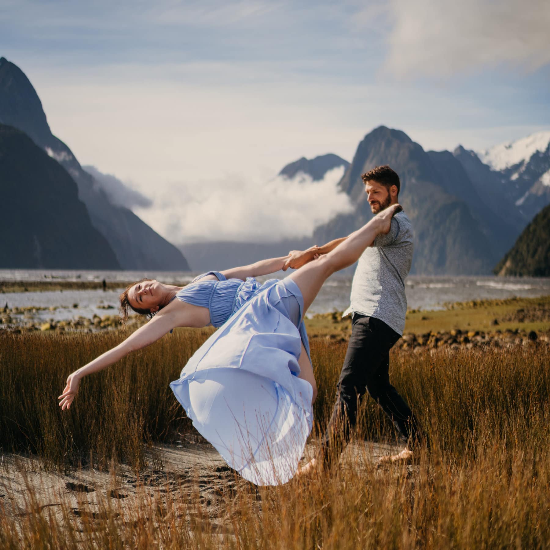 From here we headed over to our friend staying closer to the Sound’s stay to get ready as we were all trading sessions again around sunset back at the sound. We headed out as the sun got lower in the sky, a little later in the day. We were surprised to see the parking lot had emptied and we essentially had the entire place to ourselves once again. We took some photos with Mitre peak behind us – having fun and dancing around with our bare feet in the sand. The view was so incredible, we truly did not want to leave when the time came, but with the 8pm tunnel closure we definitely had to go, lol. It was fun though to drive back in the day time to see the views from the opposite direction, in sunset light and drive those winding roads not in the dark.