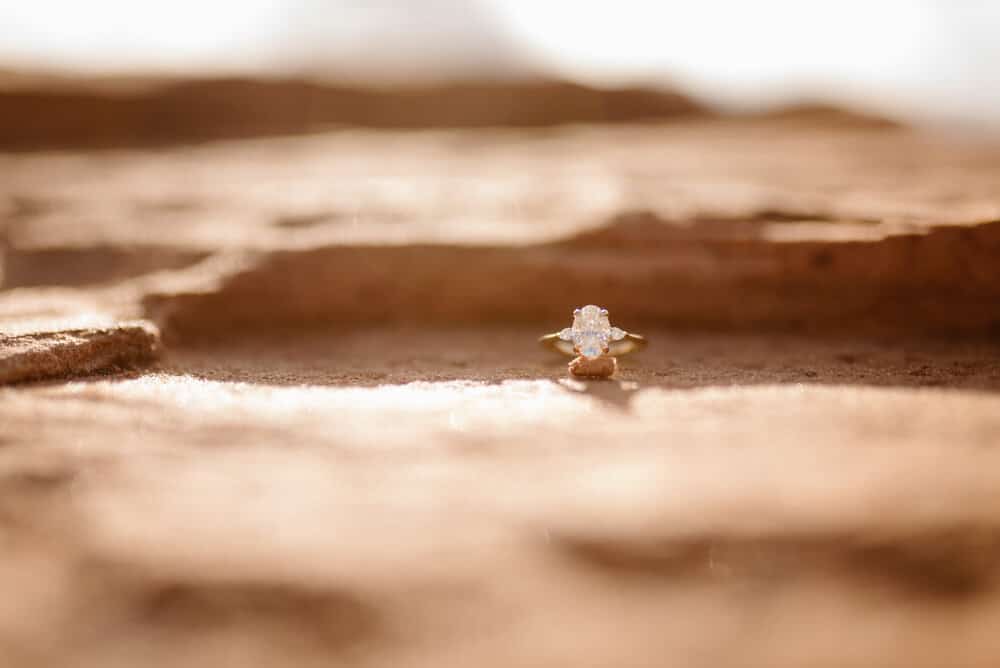 The proposal went flawlessly. Charlie had friends help him get everything together. One friend took Dariella to get her nails done before they left for their trip and one friend helped Charlie get in touch with me. Charlie got Dariella to wear a nice outfit instead of their camping attire by mentioning going to dinner on their way back to Vegas for their flight home. I stationed myself in a spot I could see them when they arrived. When Charlie and I had our call to go over the planning and details I mentioned a couple of spots at Horseshoe Bend where there are less people usually standing that he could propose at. To give them space and let him choose where he felt was right I followed along with my long lens at a distance until he got down on one knee. Dariella was for sure surprised and I could hear her saying “Is this for real?! Is this mine?!” It was a beautiful day and a great way to end their trip! After photos at the bend, a few phone calls to friends and family, they dined at Rocking V Cafe (a personal favorite of mine I recommended in Kanab, Utah) on their way back to the airport. I knew they were both excited to get home and celebrate the news with their pup Piper in their new home together!